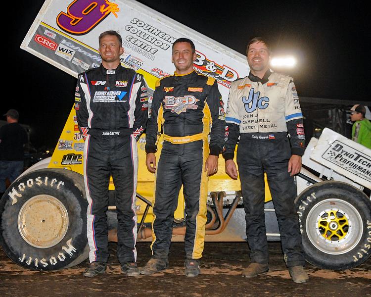 Carney II tried to mount a challenge on the restart, but Hagar was up to the task and raced on to victory lane with Carney settling for runner-up honors aboard the Sander Construction/South Plains Auto Transport/Mesilla Valley Transportation No. J2 Sprint Car