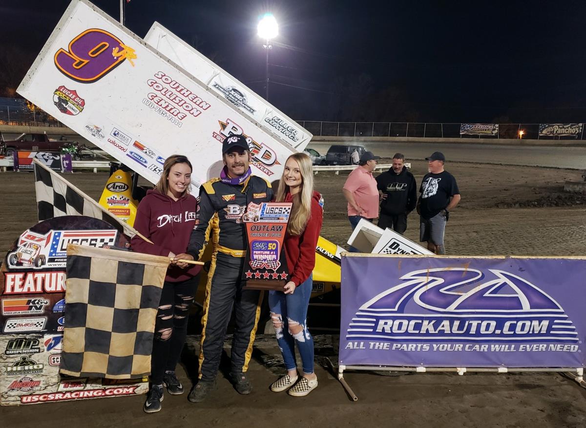 Inside Line Promotions – WEST MEMPHIS, Ark. (Nov. 10, 2020) – Victory tasted sweet last Saturday evening for Derek Hagar, who capped the 12th annual USCS Flip Flop 50 and USCS Fall Nationals by charging from ninth to score his ninth win of the season.